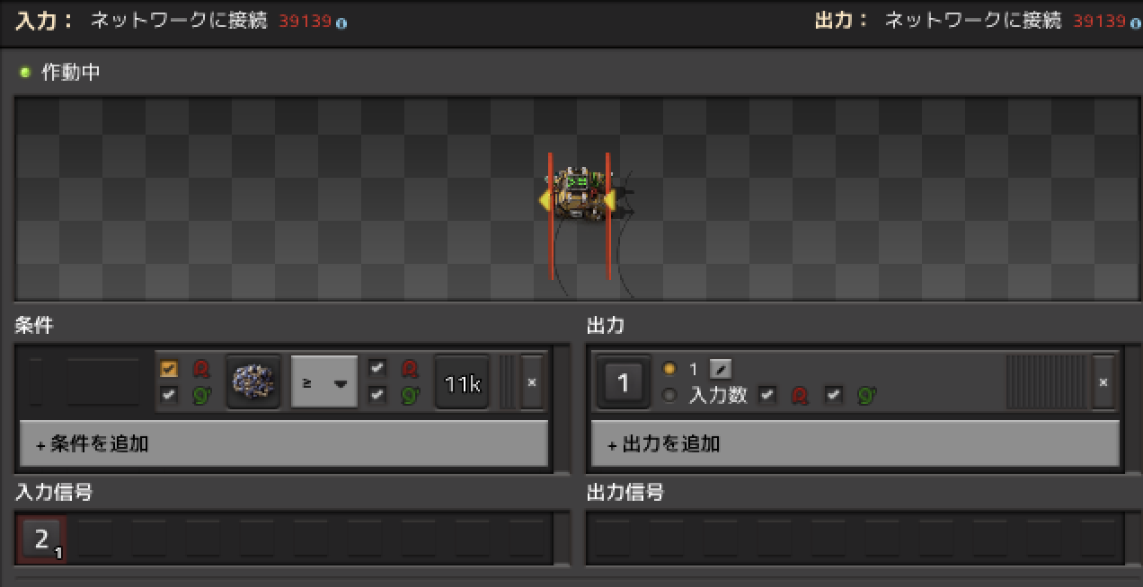 船の出発条件は以下になっており、基本的に母星現地ともに同様の条件にしています。 バッファーチェストへの積み込みは条件回路は設定していないため、