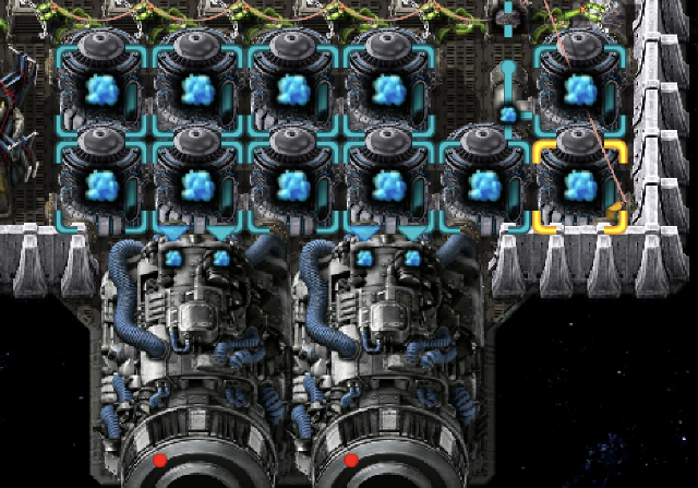 そのため、母星側では以下のように搬送ベルトを使ってアクティブ供給チェストとパッシブ供給倉庫に入れています。