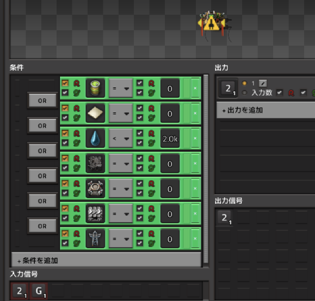 その場合、コンベアやロボットステーションがなくなったら自動で帰ってきてほしいので、 こんなふうに足りなくなったら取りに帰るようなスケジュールにすると良いです。