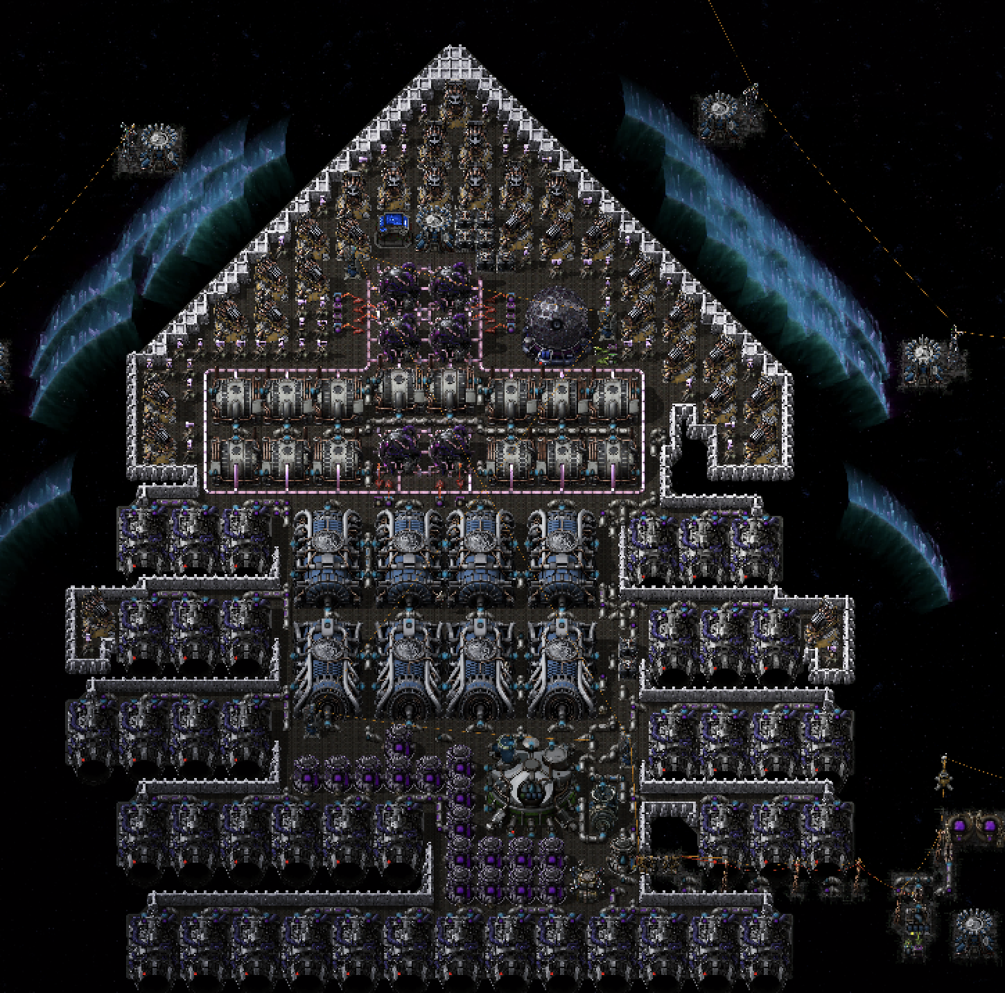 前回の記事(アルコスフィアについて) までで深宇宙サイエンスパック4までは作れるため、後は銀河系を脱出するだけです。 とはいえ初期に作った基地からまだまだな部分もあるので、それも説明しつつ銀河系脱出の船を紹介します。